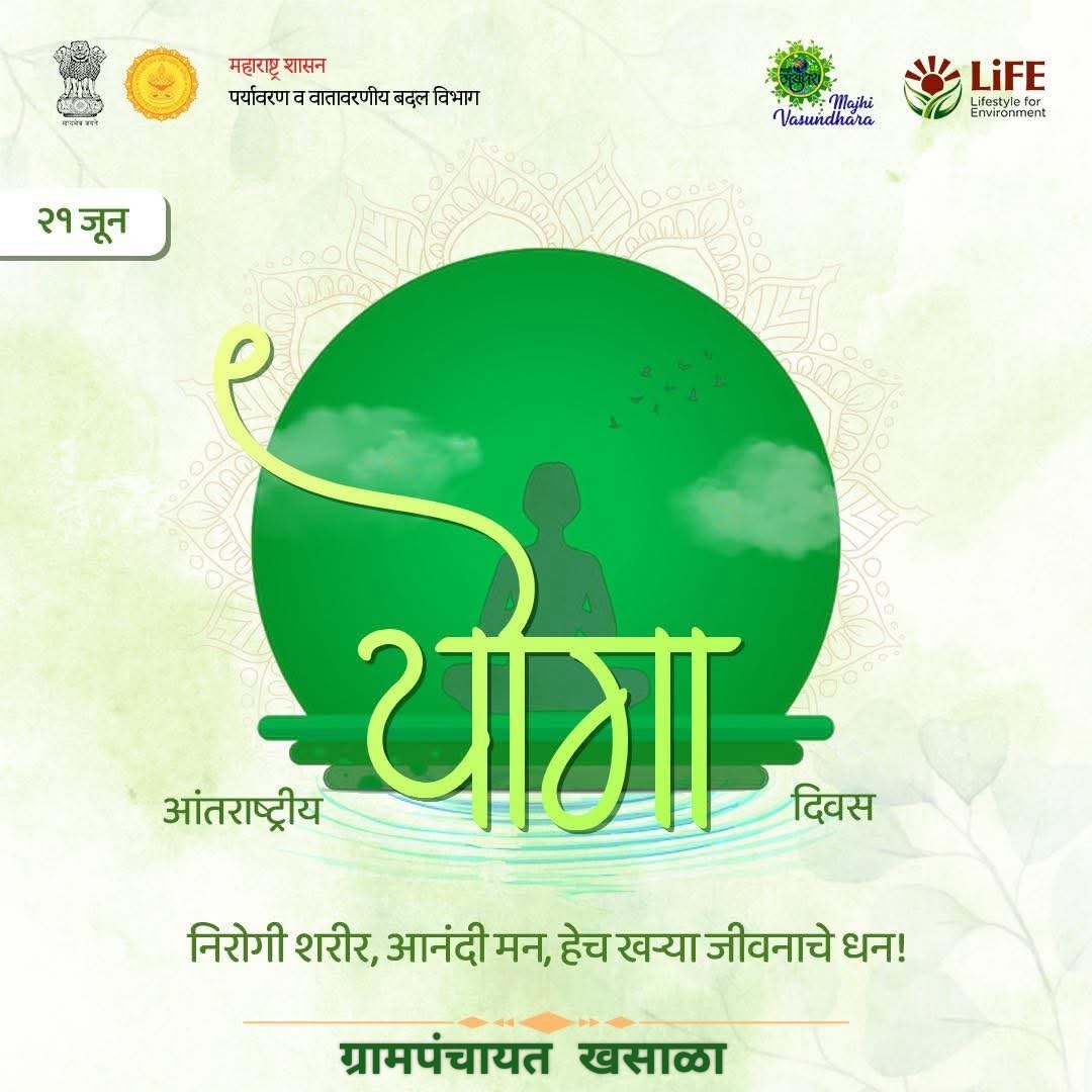 आज दिनांक २१ जून २०२५ रोजी ग्रामपंचायत खसाळा येथे जागतिक योग दिनानिमित्त पर्यावरणाविषयी जनजागृती करण्यात आली.